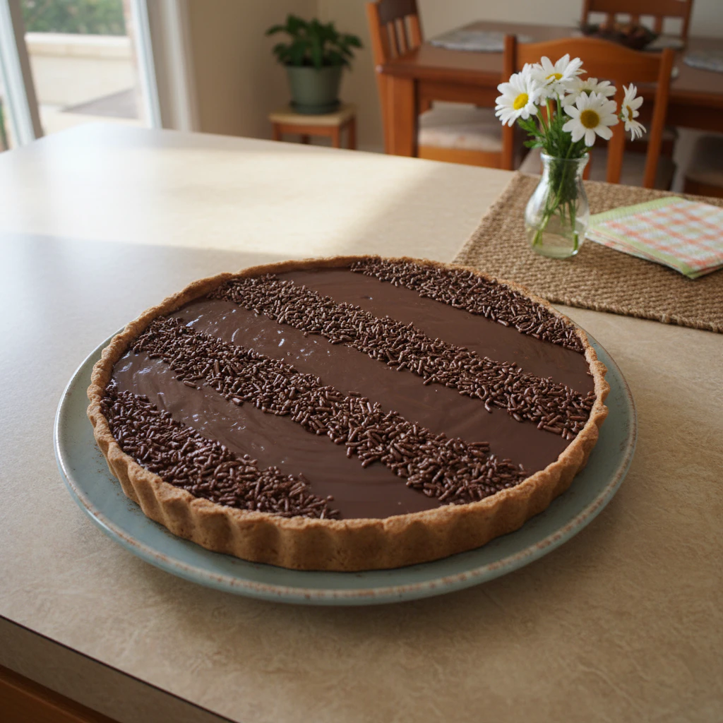 Uma torta irresistível! Base crocante de biscoito Maisena e chocolate, com um recheio cremoso e aveludado de doce de leite e chocolate. Finalizada com raspas de limão e granulado, um toque de sofisticação para o seu paladar.