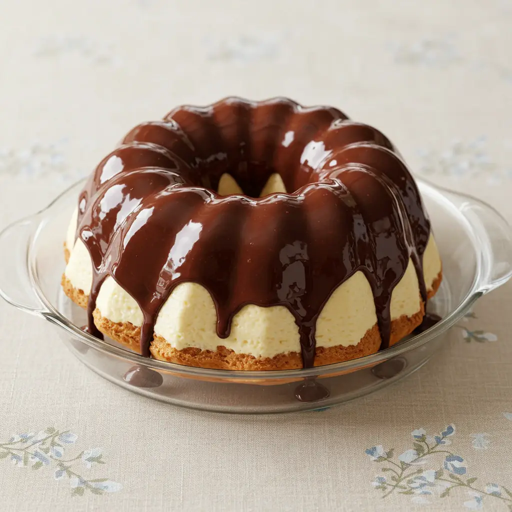Em uma forma de pudim, espalhe a calda de chocolate no fundo.
