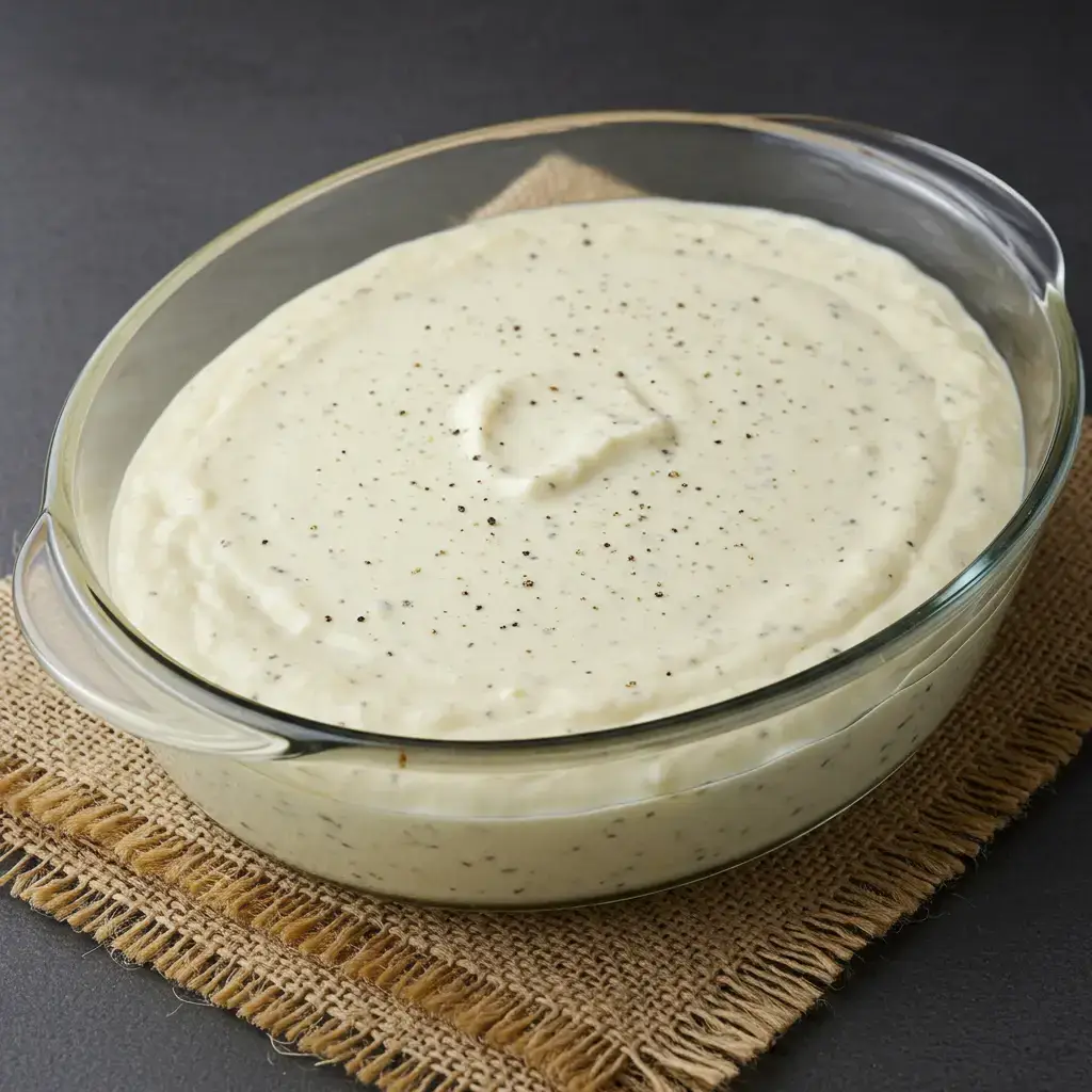 Em um liquidificador, bata o leite, a farinha de trigo, o caldo de carne ou frango e o queijo parmesão até obter um creme homogêneo.