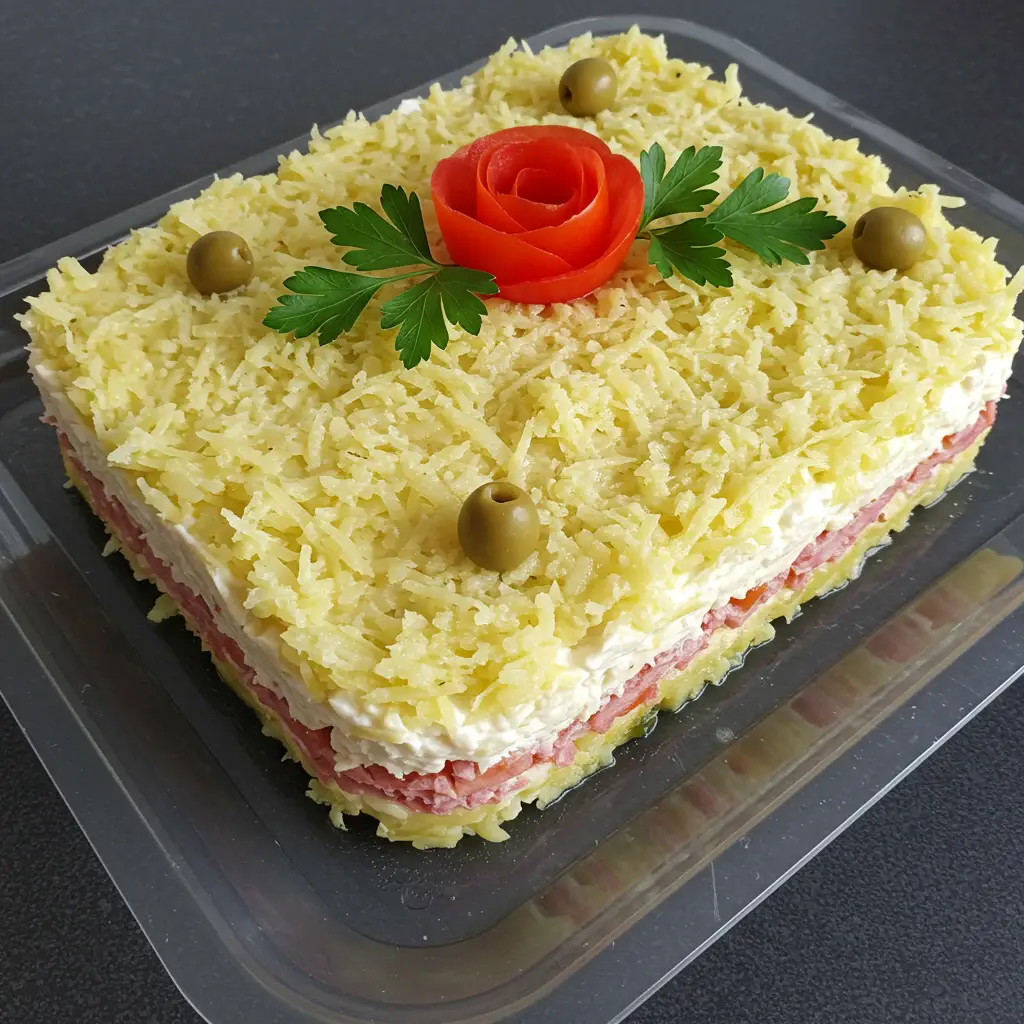 Uma torta deliciosa e fácil de fazer, com um cremoso purê de batata e um suculento frango cozido na pressão. Camadas de pão de forma embebido em maionese e um molho saboroso garantem uma experiência inesquecível.