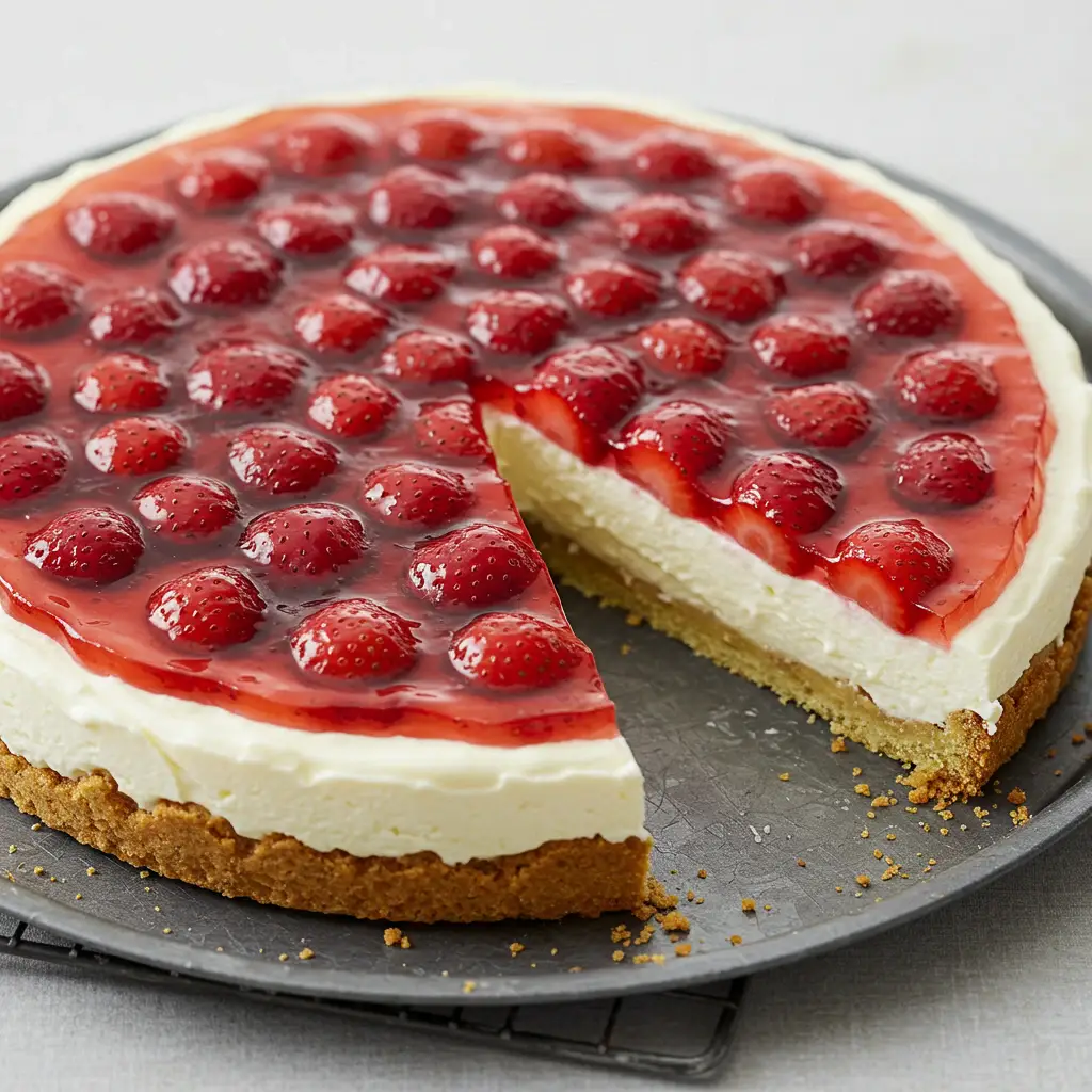Uma torta irresistível! Base crocante de amido de milho e uma cobertura cremosa de leite condensado e morangos frescos. Uma sobremesa perfeita para encantar seus convidados.