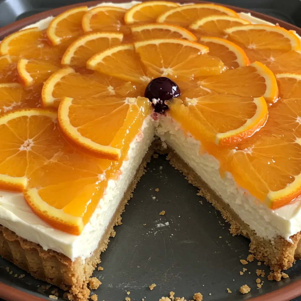 Torta Cremosa de Pêssego com Geleia de Maracujá
