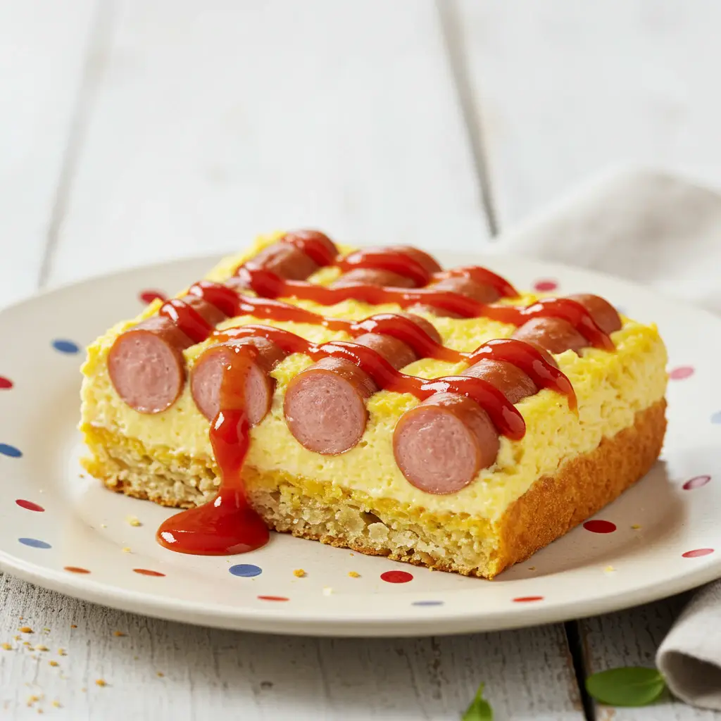 Uma torta salgada irresistível! Base crocante de biscoito, salsichas suculentas e um cremoso recheio de cheddar que derrete na boca. Perfeita para um lanche ou entrada.