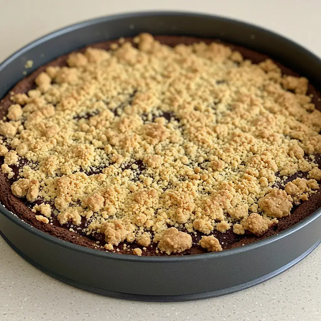 Em uma forma redonda (30 cm de diâmetro), coloque metade da farofa.