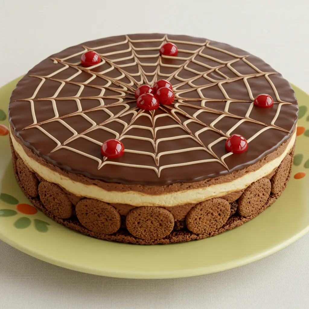 Cubra com o ganache de chocolate e decore com biscoitos tipo tortinhas e cerejas, se desejar.