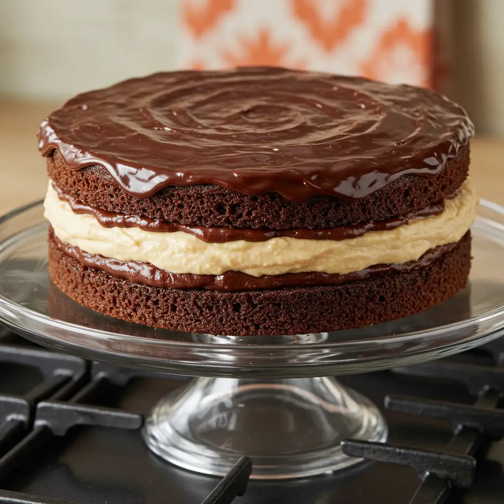 Cubra toda a torta com o chocolate derretido.