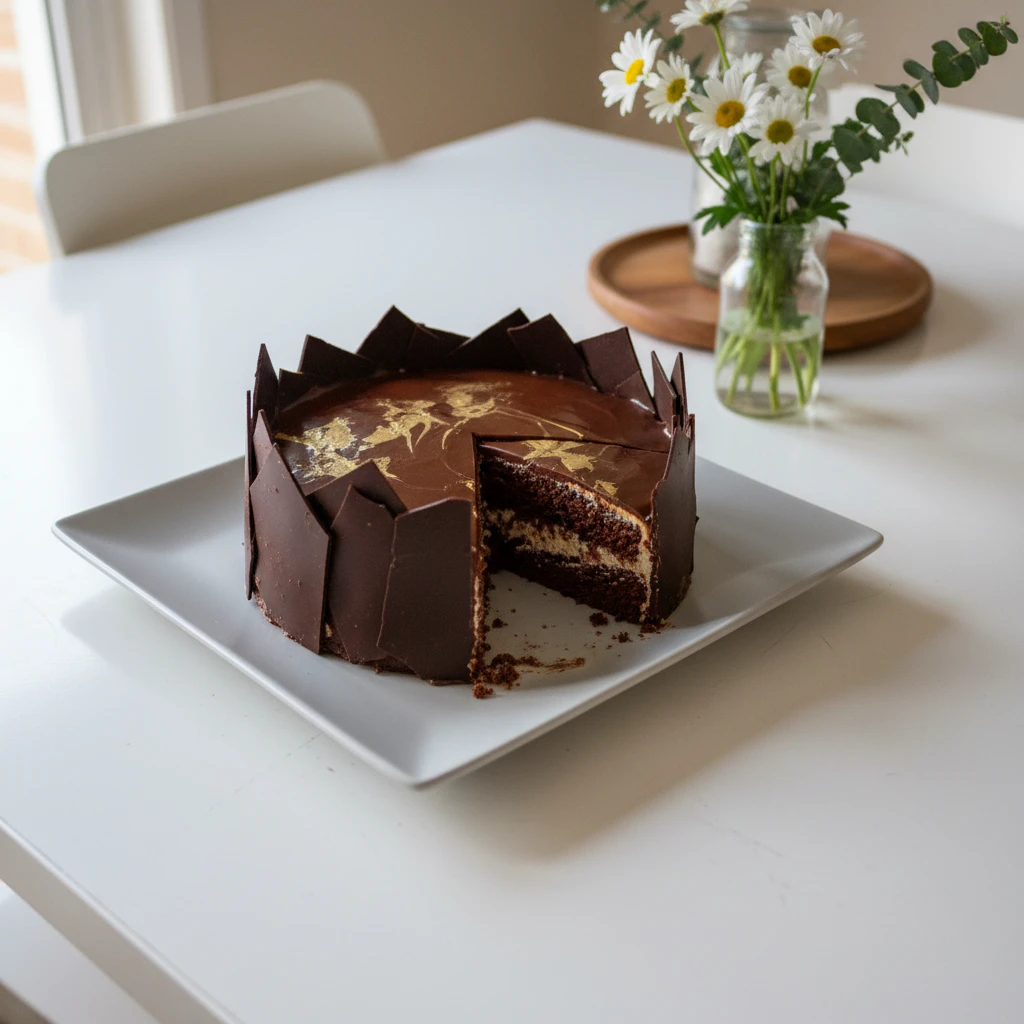 Uma torta irresistível! Camadas de biscoito crocante de avelã, um mousse de chocolate cremoso e um toque final de chocolate derretido. Uma explosão de sabor em cada garfada!