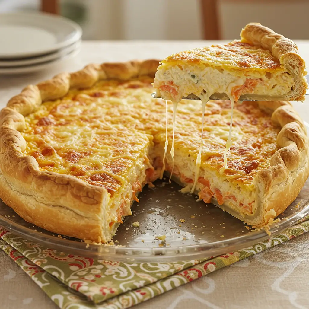 Uma torta deliciosa e cremosa, com um saboroso recheio de frango, catupiry, presunto e mussarela. Perfeita para um almoço em família ou um jantar com amigos!