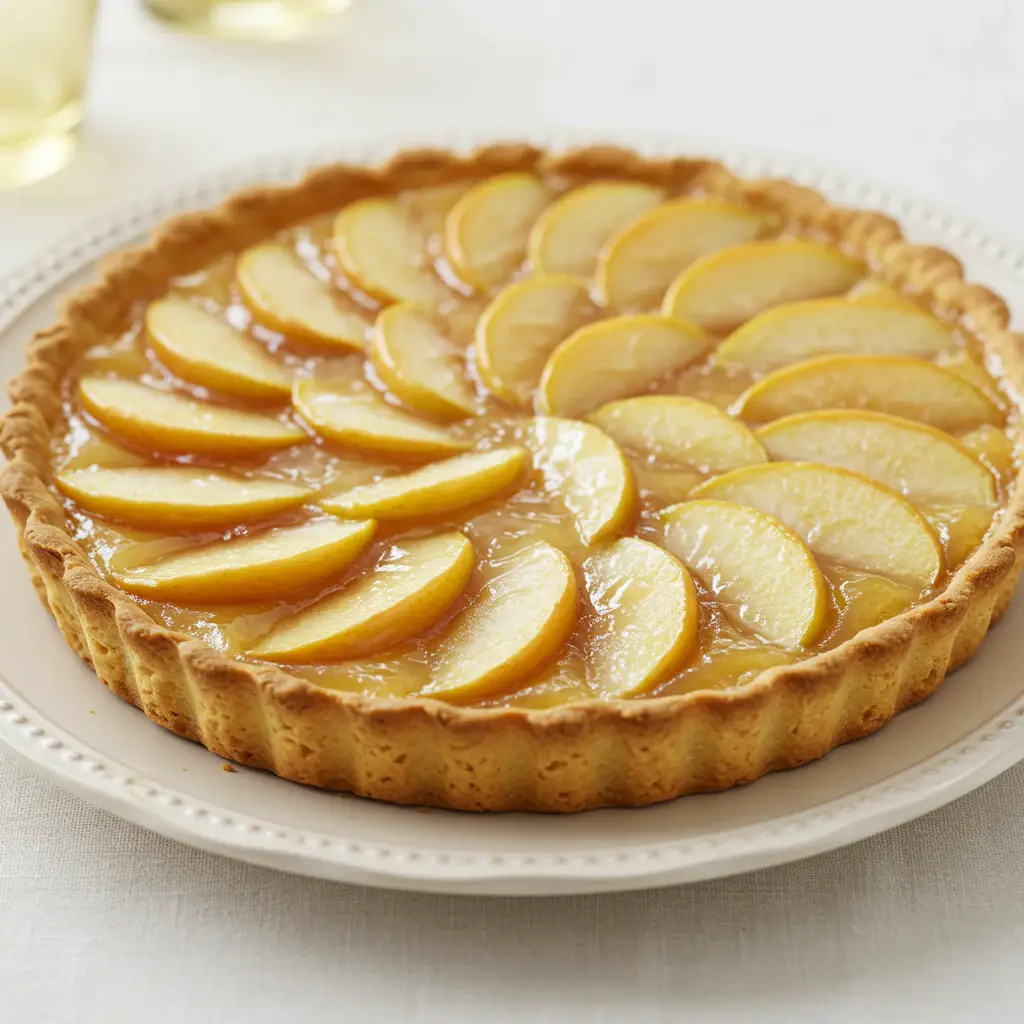 Uma torta deliciosa com maçãs suculentas cobertas por dois cremes irresistíveis: um branco cremoso e outro de laranja vibrante. Uma combinação perfeita de texturas e sabores que vai te conquistar!