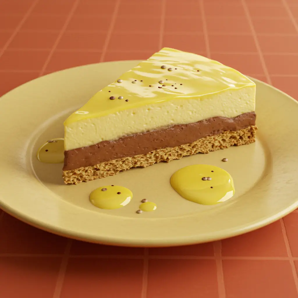 Uma torta irresistível! Base crocante de biscoito, cremoso ganache de chocolate e mousse de maracujá leve e refrescante, finalizada com calda de maracujá. Uma explosão de sabores!