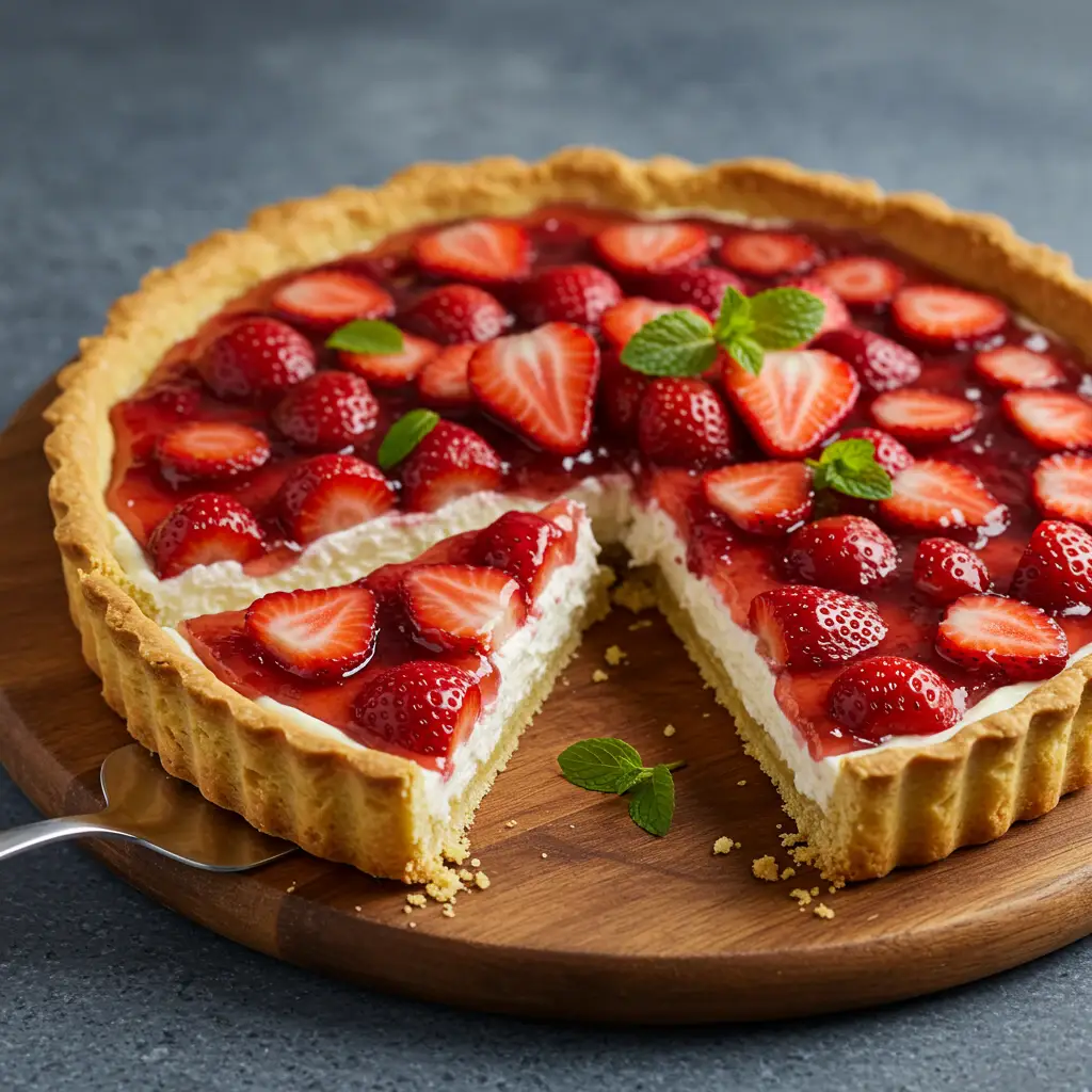 Uma torta irresistível que combina a leveza do iogurte sem lactose com o sabor intenso dos morangos frescos. A base crocante de farinha integral e amêndoas equilibra perfeitamente o cremoso recheio. Uma sobremesa perfeita para um dia especial!