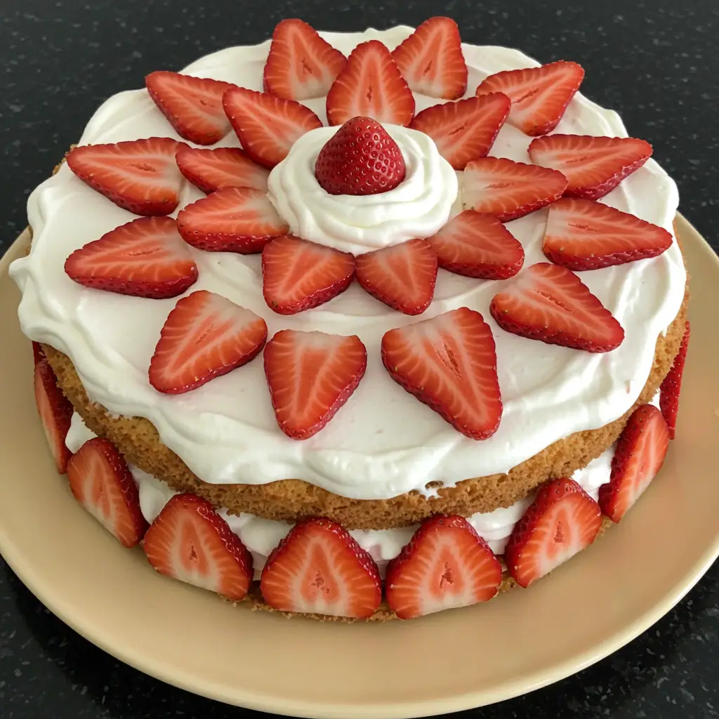 Deliciosa torta de morango com massa macia e leve, coberta por um suave chantilly e morangos frescos. Uma sobremesa perfeita para encantar seus convidados!
