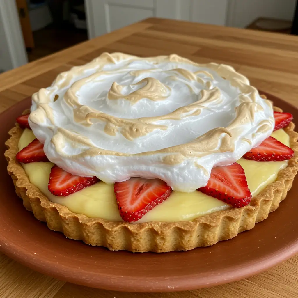 Torta de Morangos com Doce de Ovos e Merengue