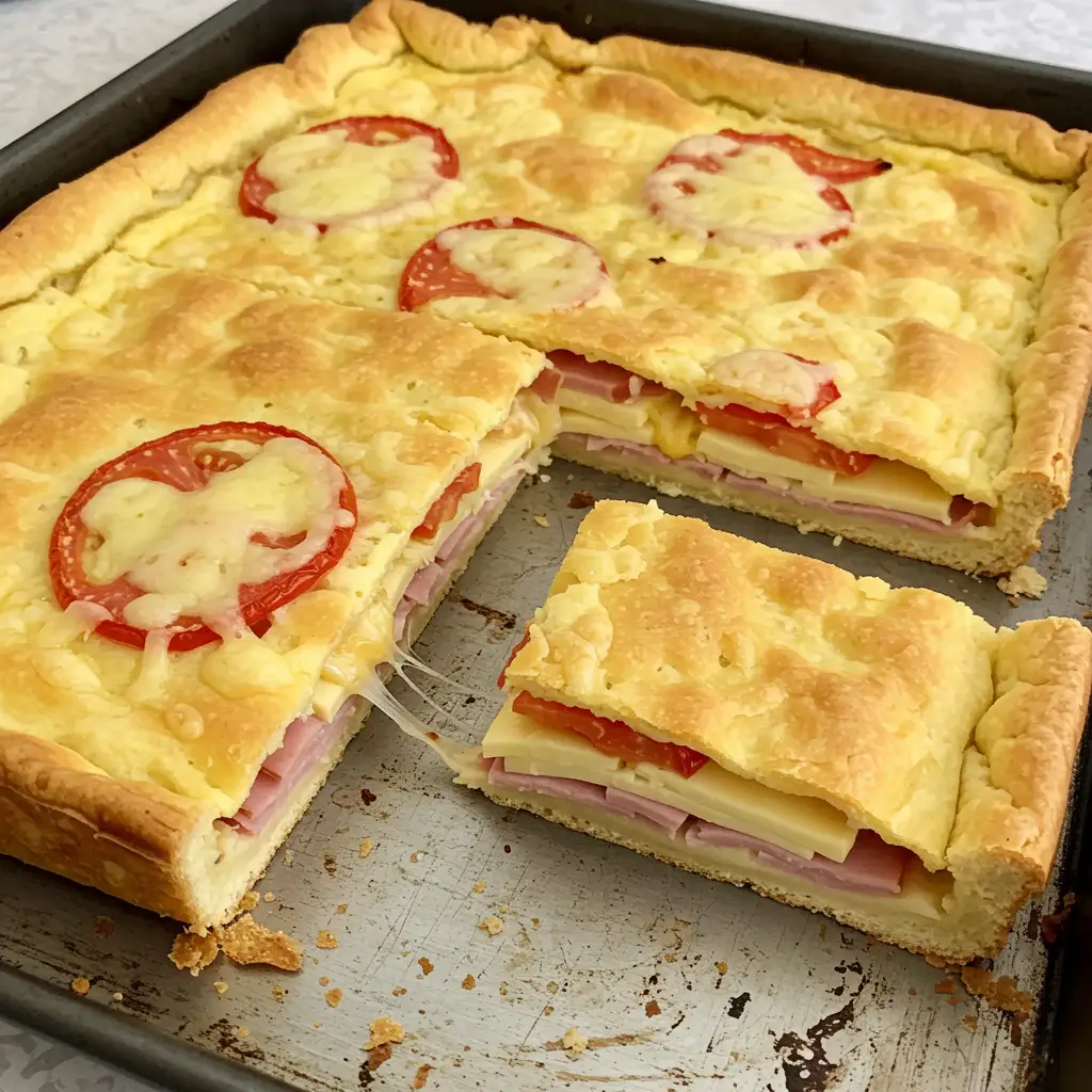 Uma torta salgada fácil e deliciosa, perfeita para um jantar informal ou um lanche da tarde. Massa fofinha e recheio saboroso de presunto, mussarela e tomate. Uma receita que agrada a todos!