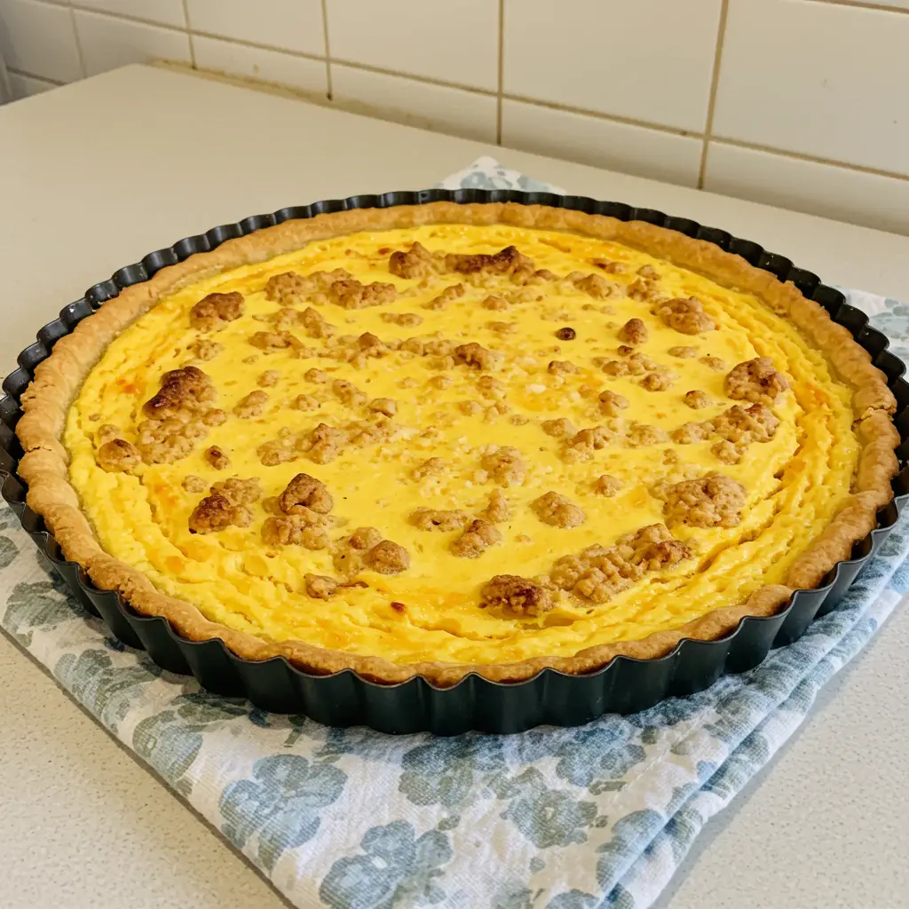 Uma torta saborosa e irresistível! Massa crocante de queijo, recheio cremoso de queijo com calabresa e um toque especial de alho crocante por cima. Perfeita para um jantar em família ou encontro com amigos.