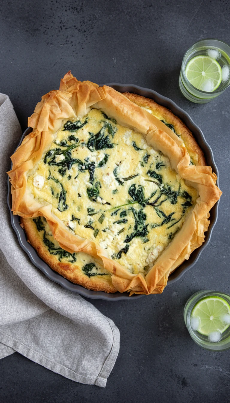 Uma torta deliciosa e fácil de fazer, com a combinação perfeita de espinafre e três queijos cremosos, envolvida em finas camadas de massa filo crocante. Ideal para um jantar especial ou um almoço sofisticado.