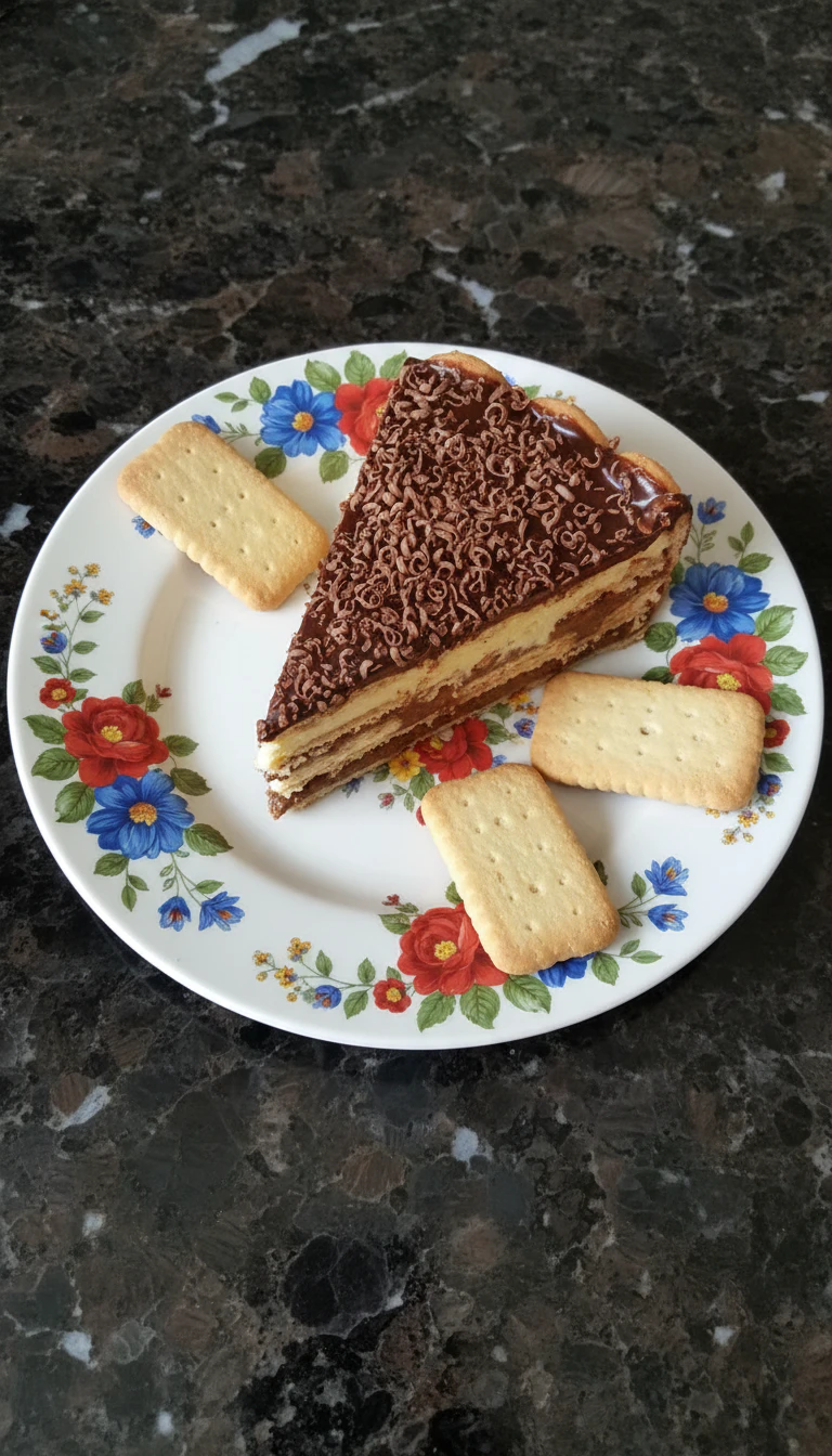 Em um refratário médio, faça camadas alternadas de biscoitos e creme de doce de leite e morango.