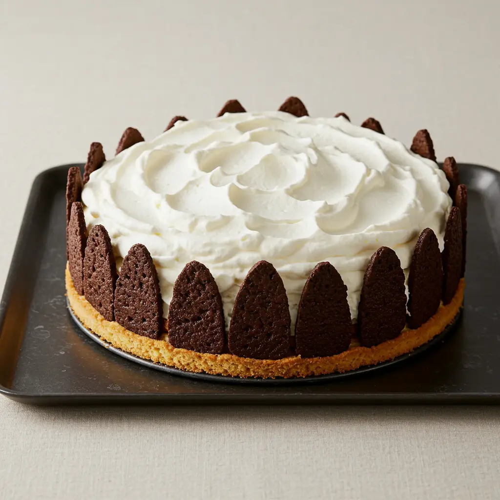 Antes de servir, retire a torta do congelador 10 minutos antes para facilitar o corte. Decore com chantilly usando um saco de confeitar com bico pitanga.