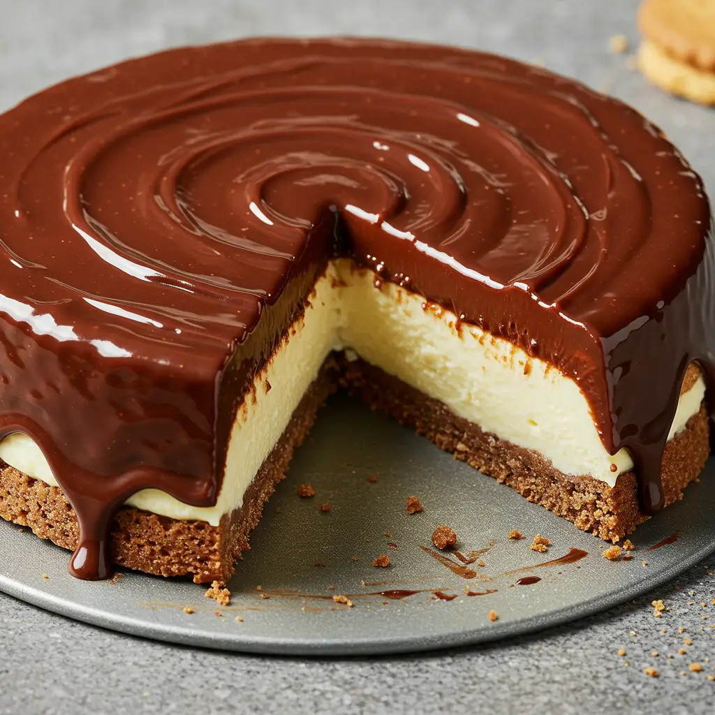 Após 1 hora, retire a torta do congelador e despeje a calda de chocolate por cima.