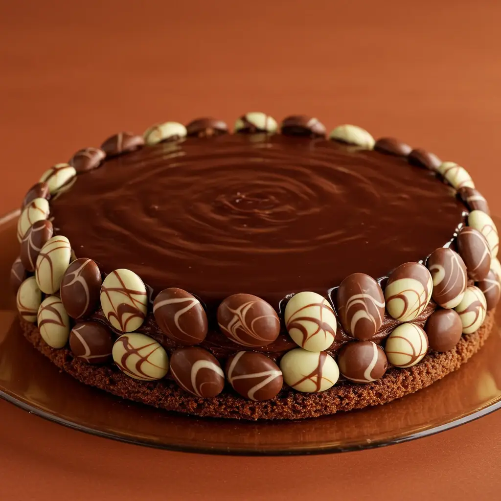 Desenforme a torta e cubra com o creme de cacau coado. Decore a seu gosto.