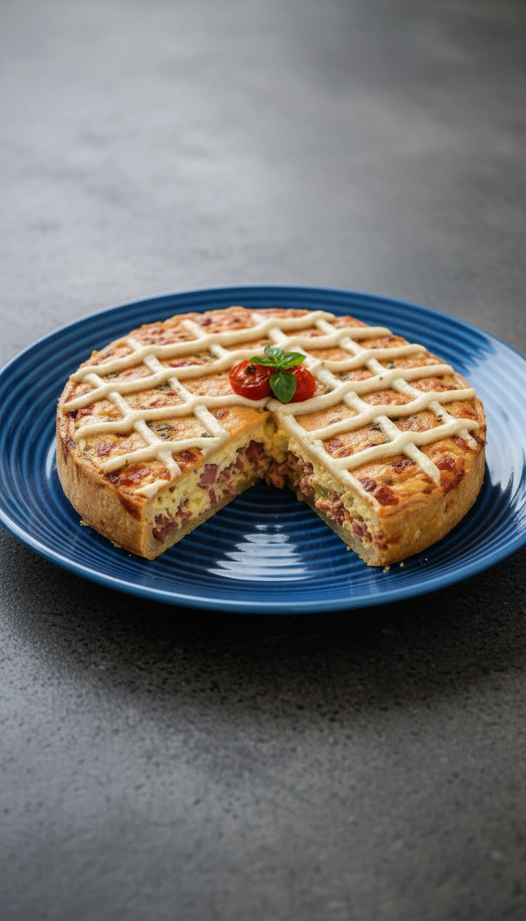 Uma torta salgada prática e deliciosa, perfeita para um almoço ou jantar informal. Preparada no liquidificador, leva presunto, tomate e mussarela, um clássico saboroso!