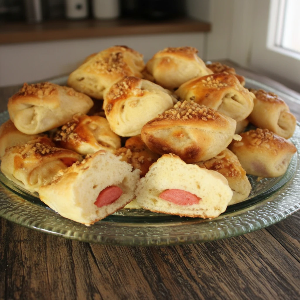 Deliciosas trouxinhas de salsicha, uma receita prática e saborosa para um lanche ou aperitivo. Massa macia e recheio suculento, perfeitas para toda a família!