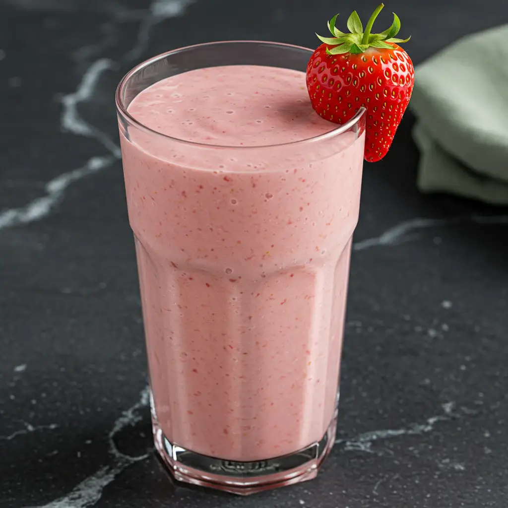 Uma vitamina deliciosa e refrescante, perfeita para um lanche da tarde ou café da manhã. Cremosa e saborosa, feita com morangos suculentos e leite integral.