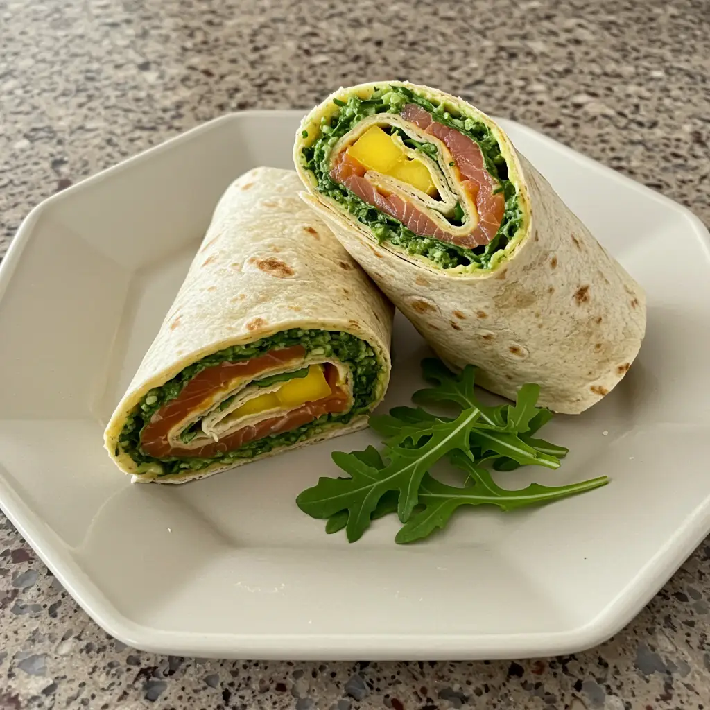 Um wrap leve e saboroso, perfeito para um almoço rápido e sofisticado. O salmão defumado combina perfeitamente com o toque tropical da manga e o cremoso pesto de castanha-do-pará.