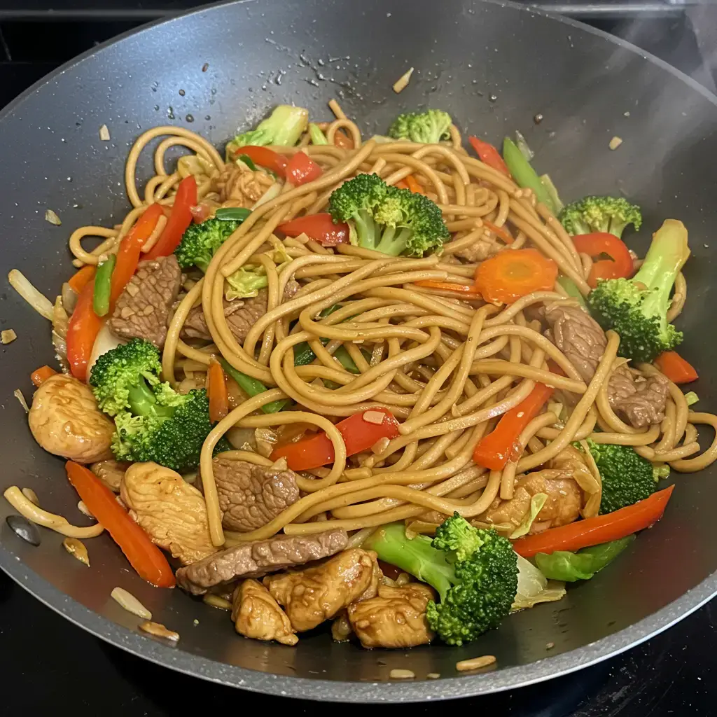 Um yakissoba saboroso e completo, com frango e alcatra, legumes frescos e um molho irresistível. Uma explosão de sabores que vai te conquistar! Receita perfeita para um jantar em família ou com amigos.