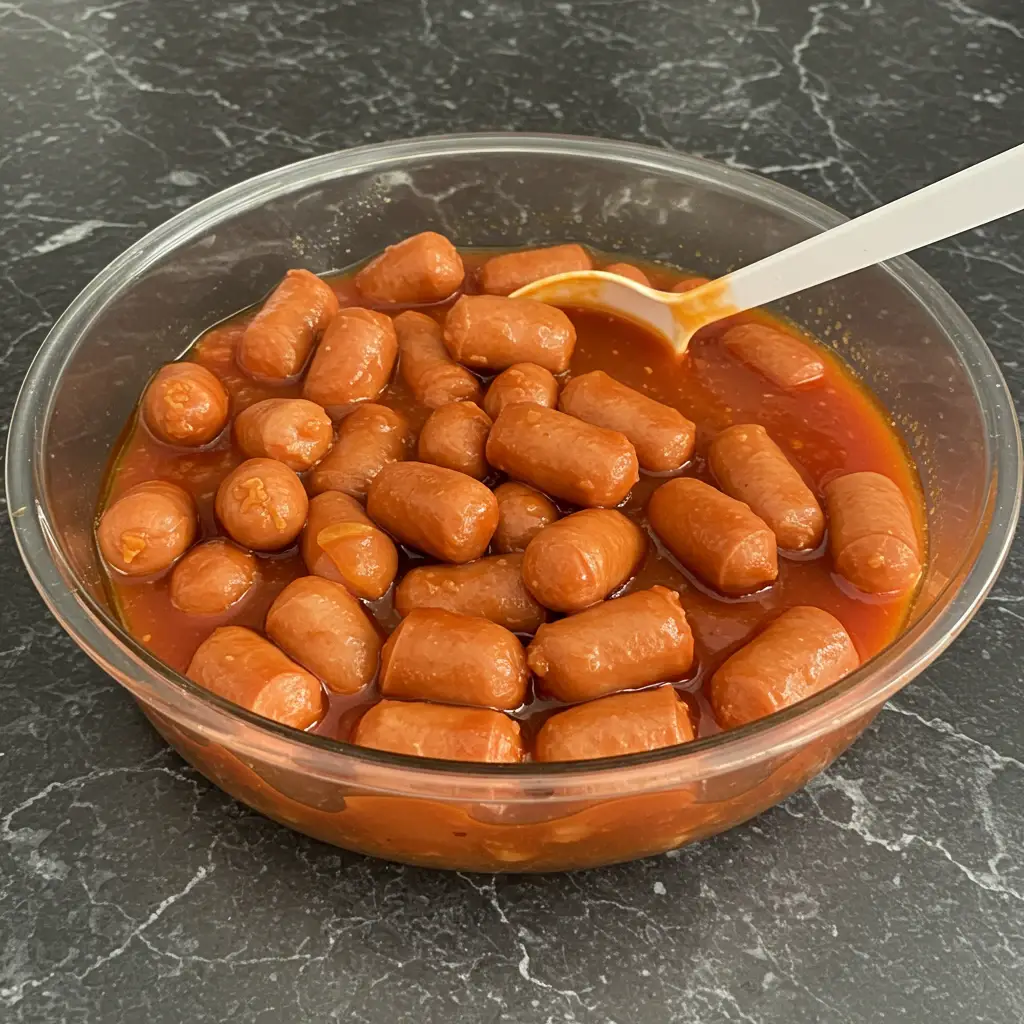 - 5Retire o molho do microondas, adicione as salsichas cozidas e leve ao microondas por mais 3 minutos.